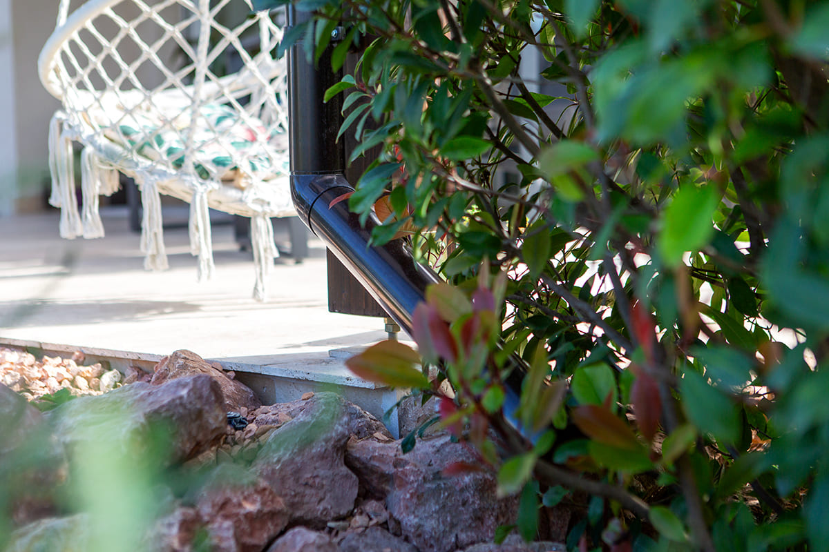 A csatornarendszer kialakítása során gondoskodtunk arról, hogy a víz elvezetése a kert természetes vízelvezető rendszerébe történjen. A projekt különlegessége, hogy a víz egy gondosan kialakított sziklakertbe kerül.
