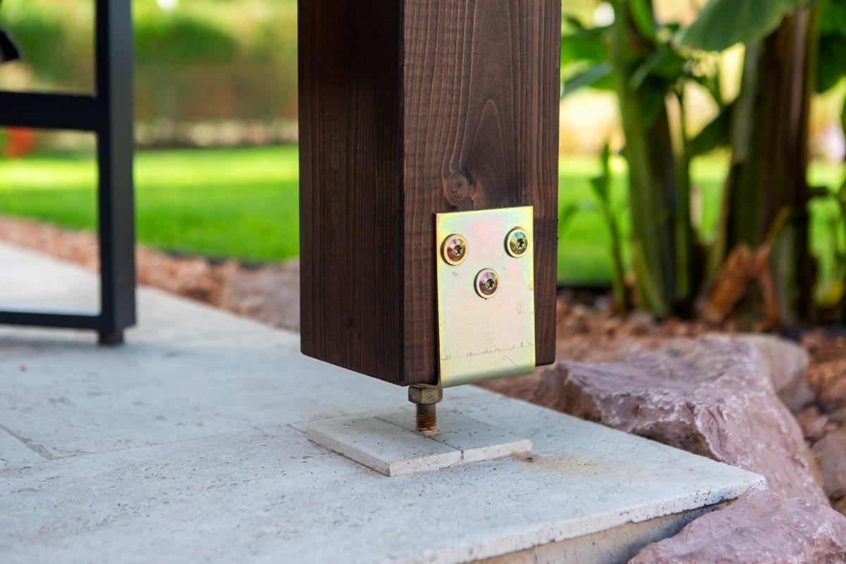 - Kőburkolatba rögzített tartóoszlopok – szilárd alapozás