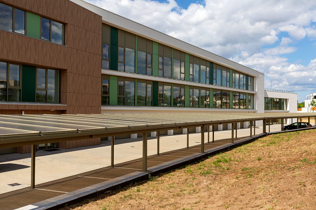 Az alumínium vázszerkezet előnye nemcsak az esztétikában és tartósságban rejlik, hanem abban is, hogy a 72 méteres hosszúság ellenére stabilan tud állni minimális lábtartókkal. Ez különösen fontos volt, hiszen a parkolóhelyek kényelmes megközelíthetőségét kiemelten fontosnak tartottuk ennél a projektünknél is.