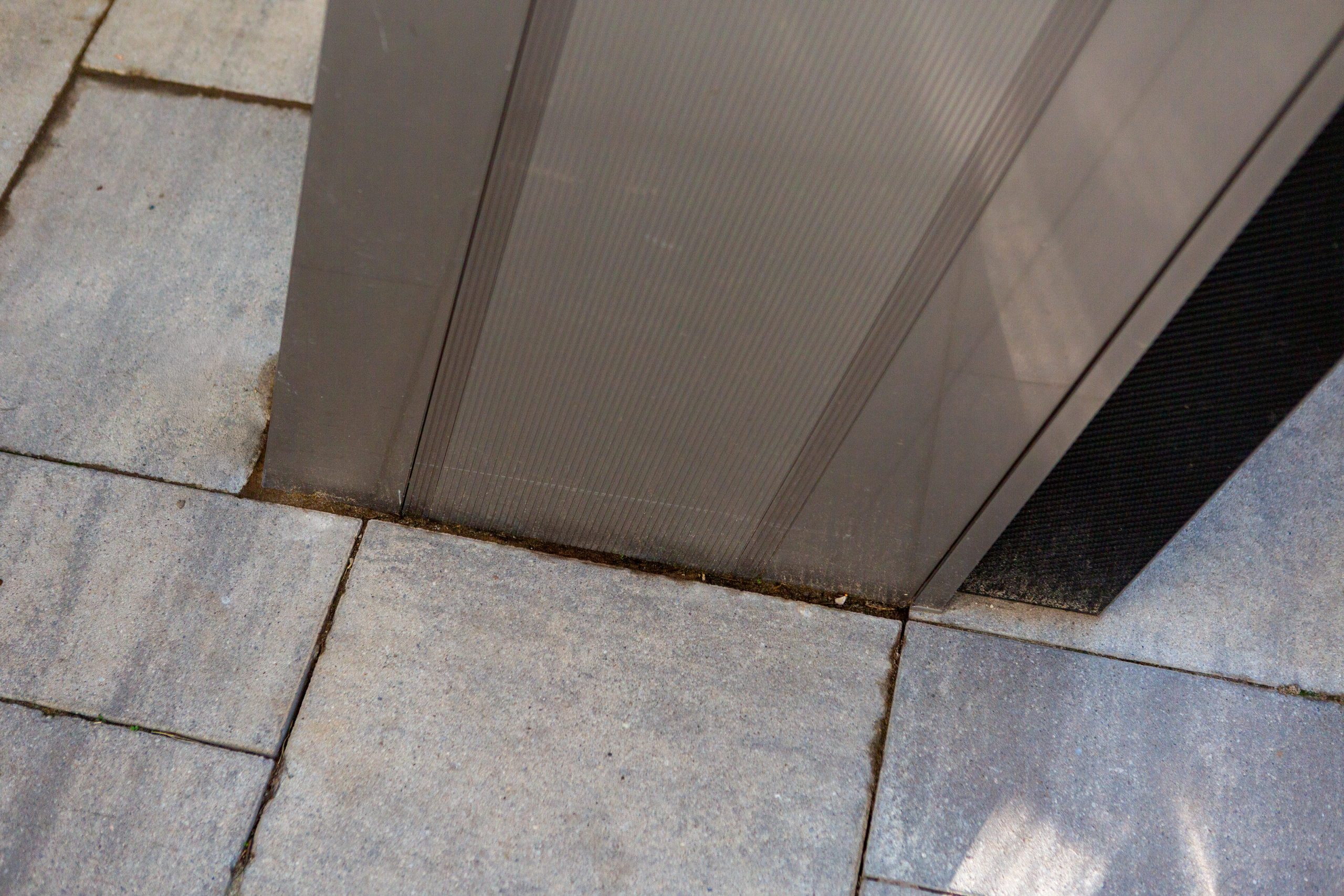 A két tartólábat a szerkezet hátsó részén található, és szilárd betonalapba rögzítettük. Ez a megoldás optimális teherelosztást biztosít, miközben minimalizálja a helyigényt az udvaron. Az alapozás méretezése során figyelembe vettük a japán gyártású alumínium szerkezet könnyű súlyát, a füstszínű polikarbonát tető terhelését, valamint az időjárási körülményekből adódó szél- és hóterhelést. A szakszerű szilárd betonalapos rögzítés garantálja a hosszú távú stabilitást még szélsőséges körülmények között is.