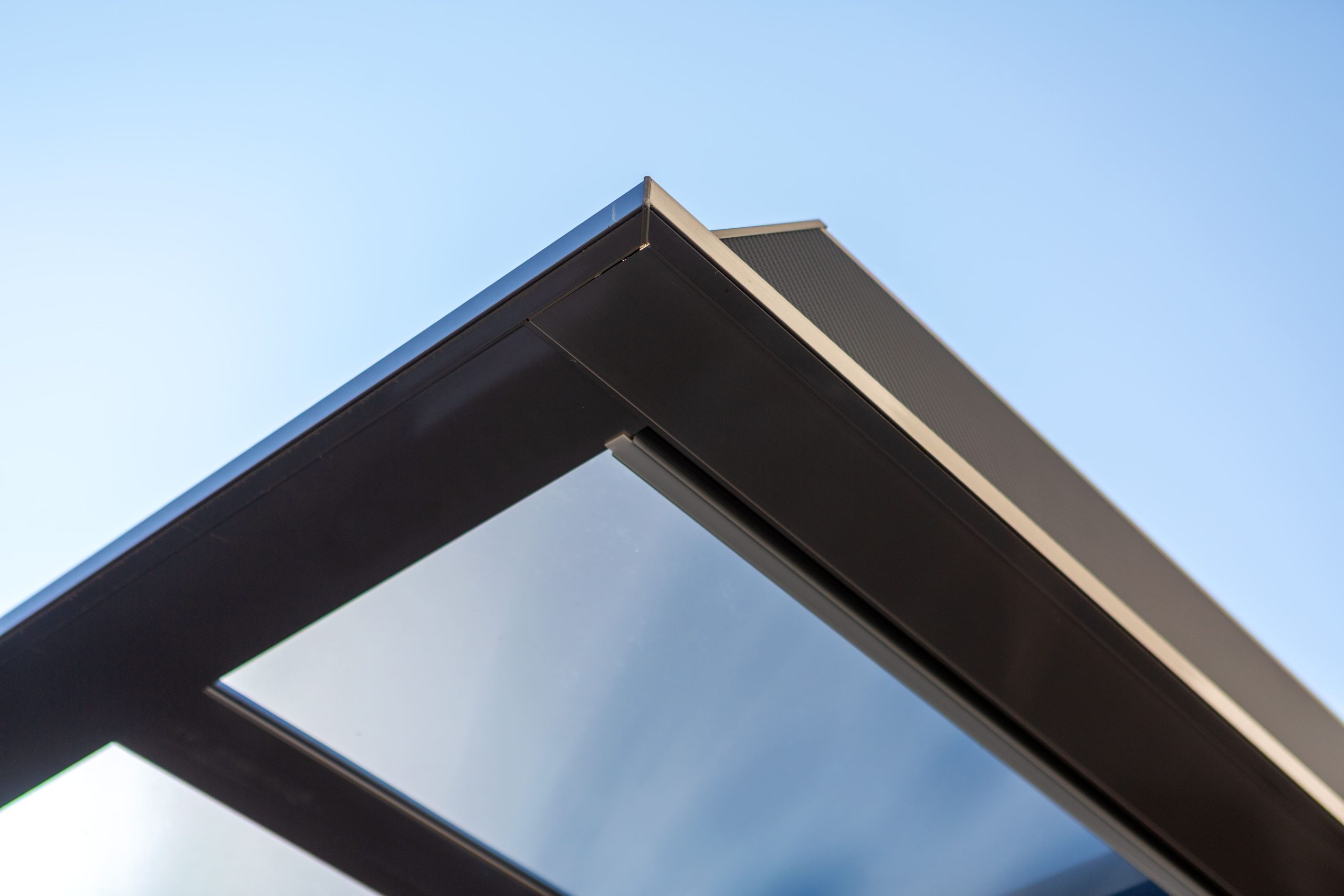 A beépített csatornarendszer esztétikai szempontból is előnyös, hiszen nem igényel külön látható vízelvezetési elemeket, így megőrzi a Ximax MyPort letisztult, modern vonalvezetését.