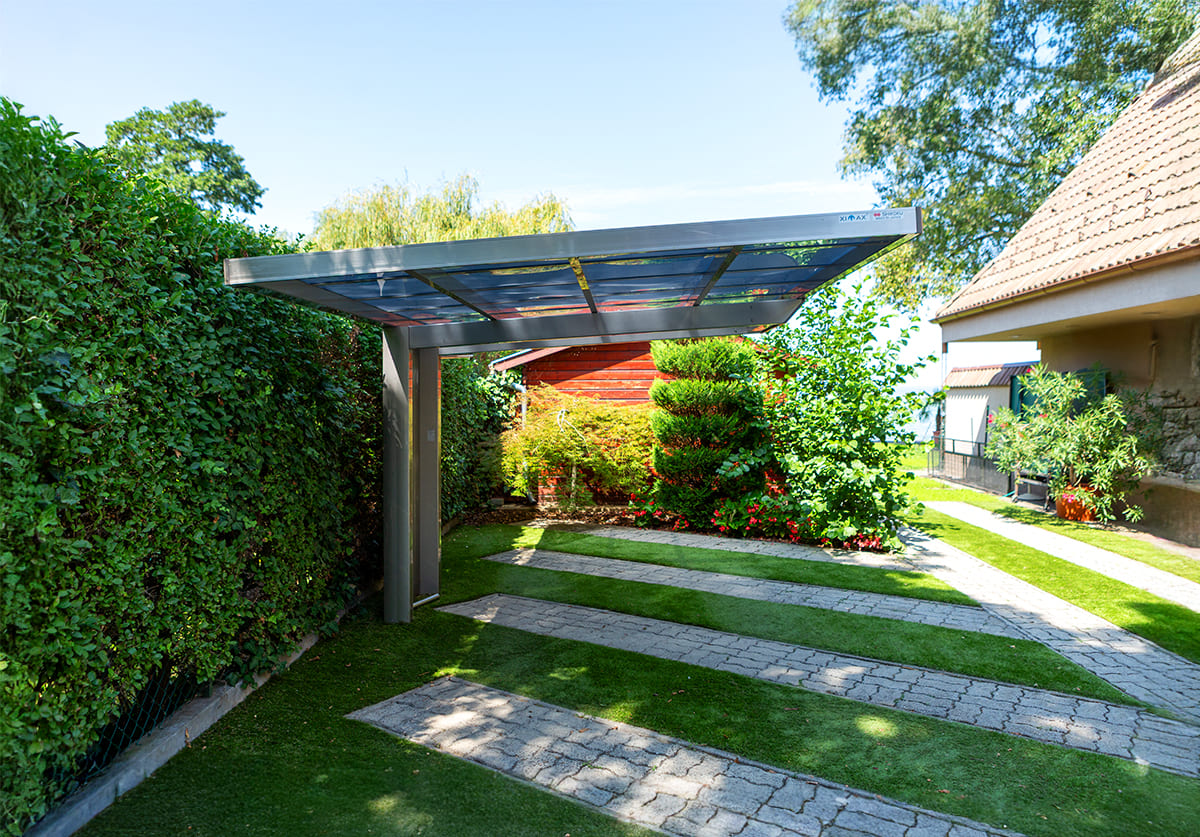 A Ximax Neo egyoldali tartólábas kialakítása modern és letisztult megjelenést biztosít és minimális helyet foglal, miközben maximális védelmet nyújt a jármű számára. A japán gyártású alumínium szerkezet és a polikarbonát tető kombinációja hosszú távú megoldást biztosít alacsony karbantartási igénnyel, ami különösen értékes egy nyaralóingatlan esetében, ahol nem mindig van lehetőség a rendszeres karbantartásra.
