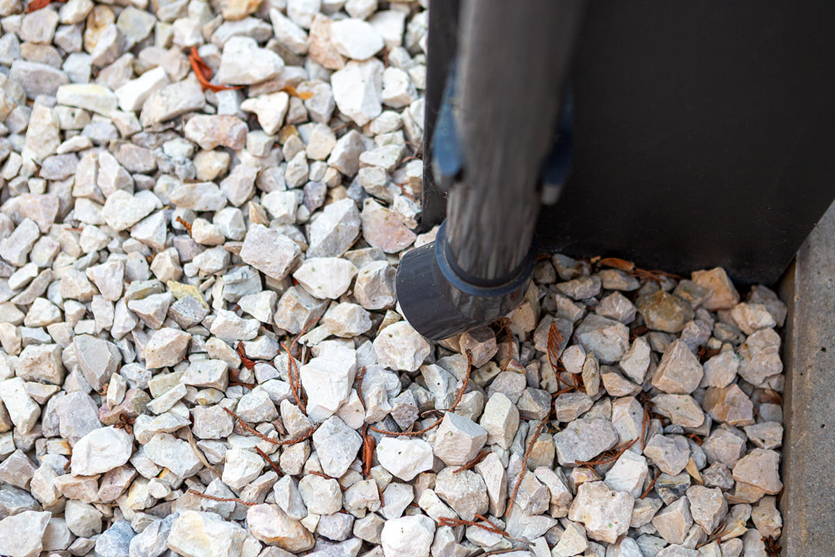 A telepítés során különös gondot fordítottunk arra, hogy az alapozás szinte láthatatlan maradjon. A betonalapos rögzítés után a díszkaviccsal visszafedetük a munkaterületet, így a tartólábak alapjai teljesen eltűnnek a díszkavicsok alatt. Ez a megoldás biztosítja a szilárd, hosszú távú stabilitást, miközben megőrzi az udvari terület eredeti, rendezett megjelenését. A díszkaviccsal borított felület változatlan maradt, így a beálló szerves részévé vált a környezetnek.
