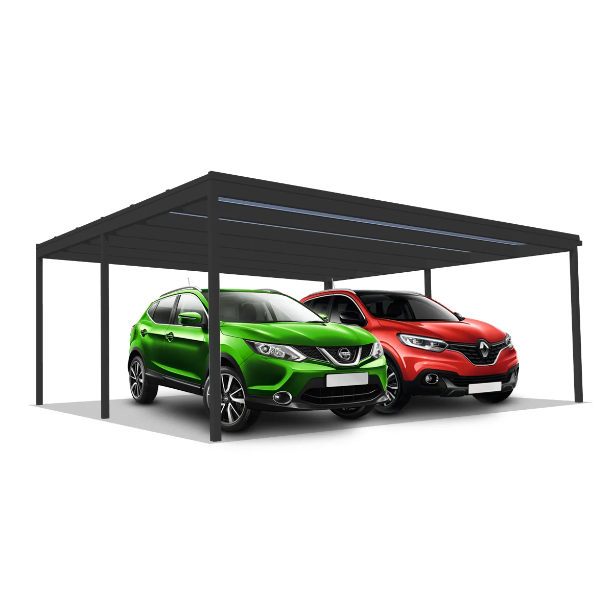 További fedés típusok közül is választhat a termékcsaládon belül: szendvicspanel fedéssel (antracit vagy fehér színben) és trapézlemez fedéssel (antracit vagy fehér színben). Ezek a fedések viszont nem engedik át a természetes fényt, így teljes árnyékban lesz az autója.