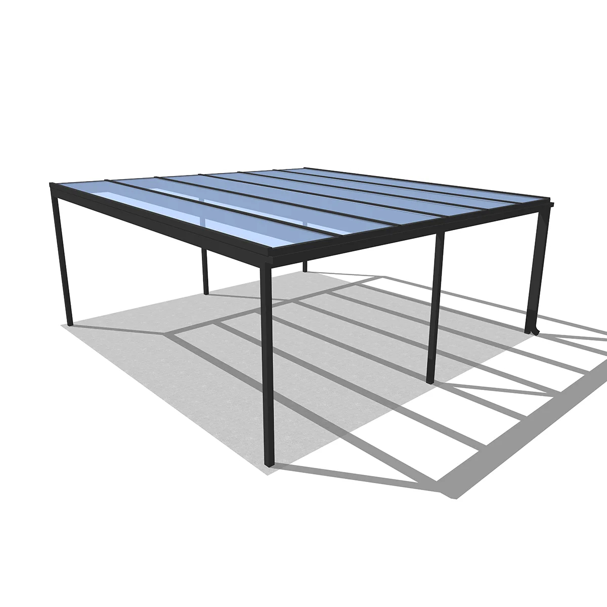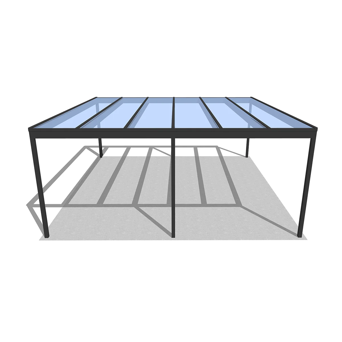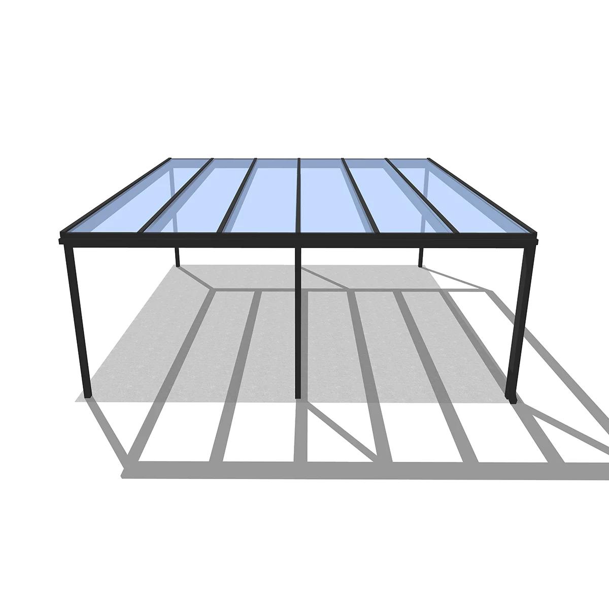 A tető 6 oszlopon nyugszik, melyek két oldalra vannak rendezve és beton alapba kerülnek rögzítésre. A szerkezet fedése polikarbonát, ami 100%-ban visszaveri az UV sugarakat, és az infravörös tartományt is megszűri. A polikarbonát tető az alábbi színekben érhető el: víztiszta, antracit, bronz. A polikarbonát tetők előnye, hogy részben átengedik a természetes fényt, így a kocsibeálló alatt nem lesz teljesen sötét, míg autója védve van a káros sugaraktól.