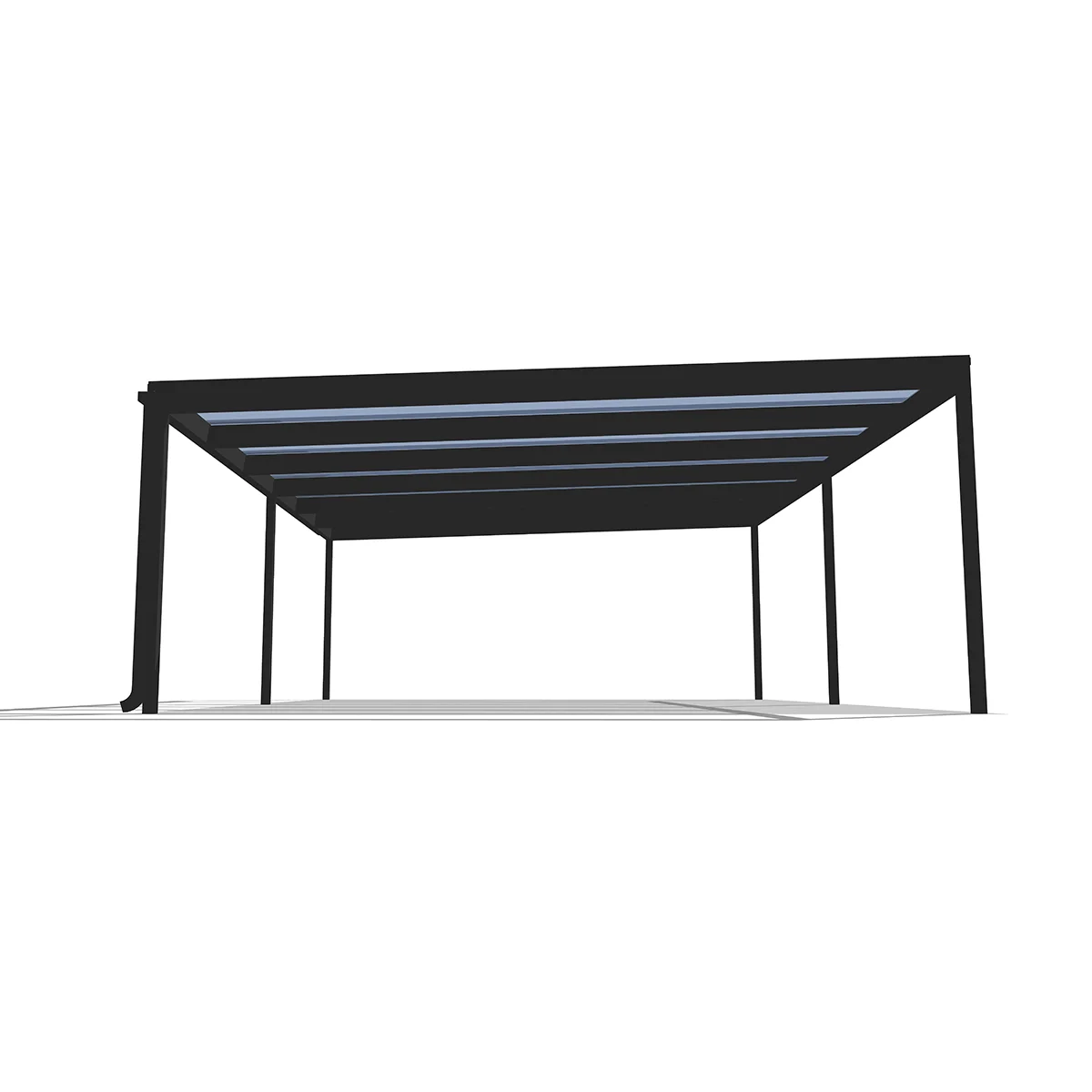 A Deluxe Quick Alu autóbeállók a szerkezethez illő négyzetes csatornával rendelkeznek, a tető enyhe lejtése biztosítja a megfelelő vízelvezetést. A csatorna színe típustól függően lehet antracit, fehér vagy barna.