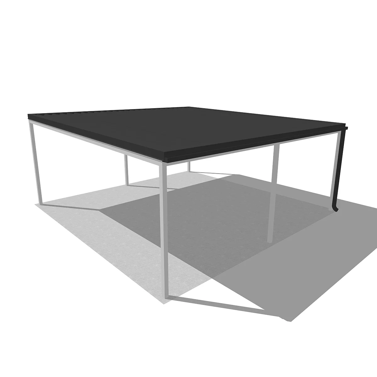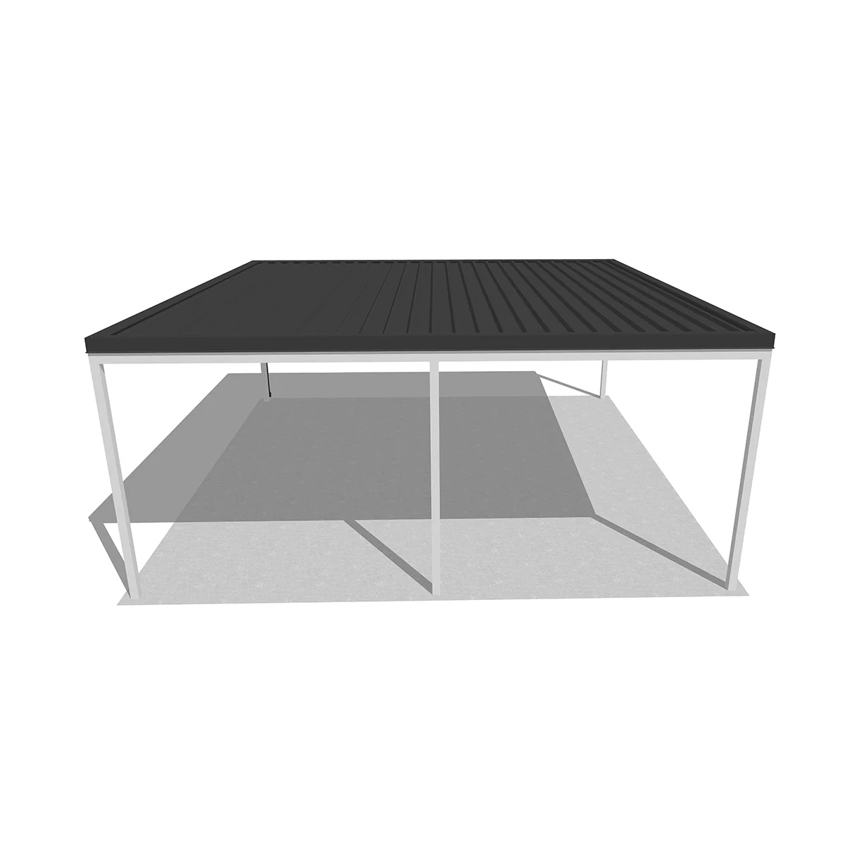 A tető 6 oszlopon nyugszik, melyek két oldalra vannak rendezve és beton alapba kerülnek rögzítésre. A szerkezet fedése trapézlemez, ami antracit és fehér színekben érhető el. A trapézlemez tetők előnye, hogy nem engedik át a természetes fényt, így teljes árnyékban lesz az autója.