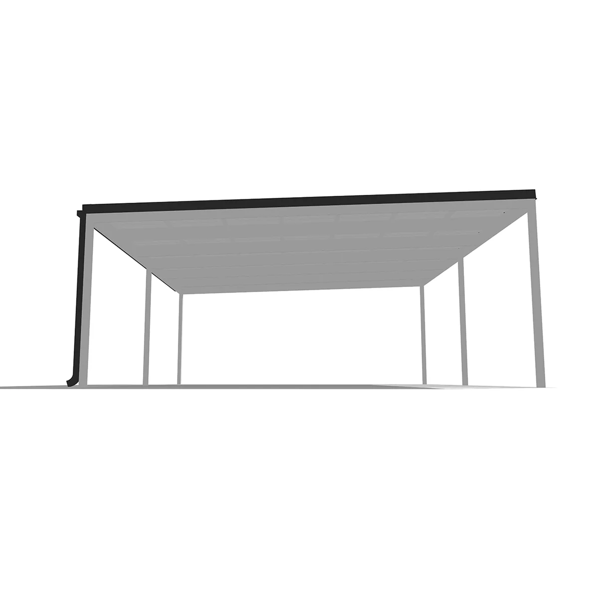 A Deluxe Quick Alu autóbeállók a szerkezethez illő négyzetes csatornával rendelkeznek, a tető enyhe lejtése biztosítja a megfelelő vízelvezetést. A csatorna színe típustól függően lehet antracit, fehér vagy barna.