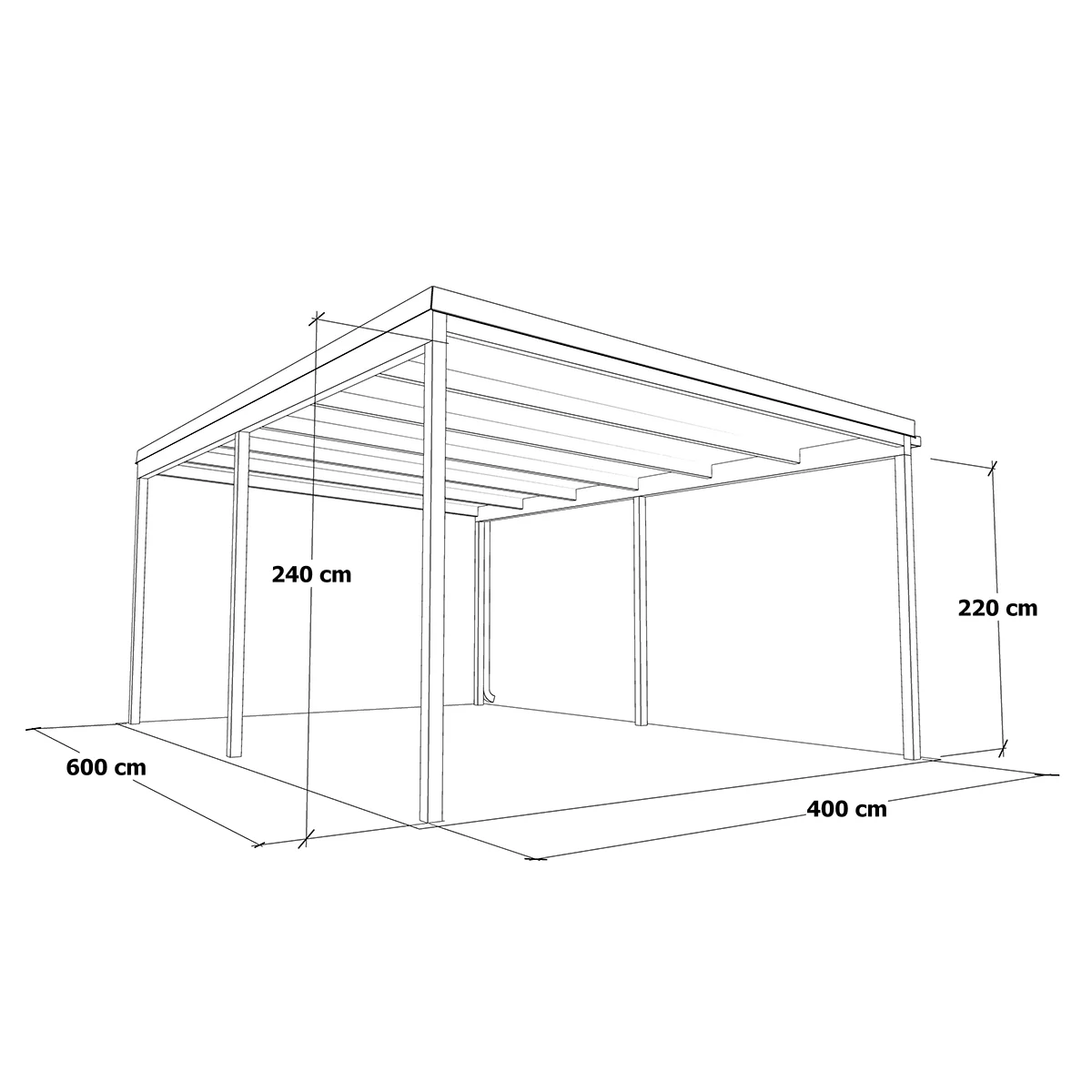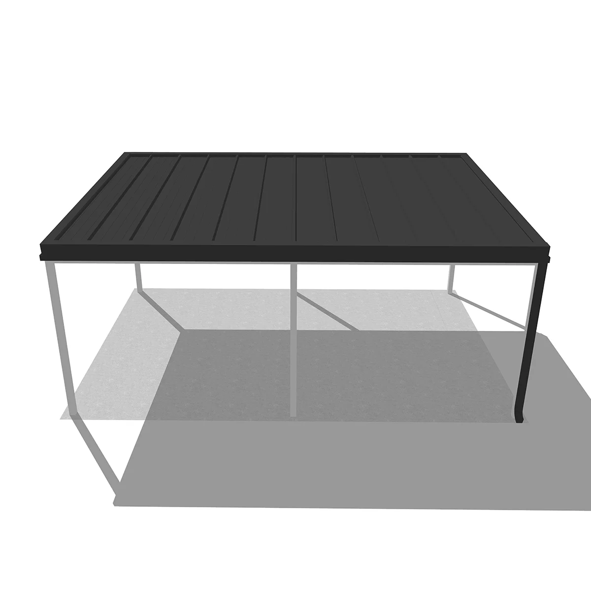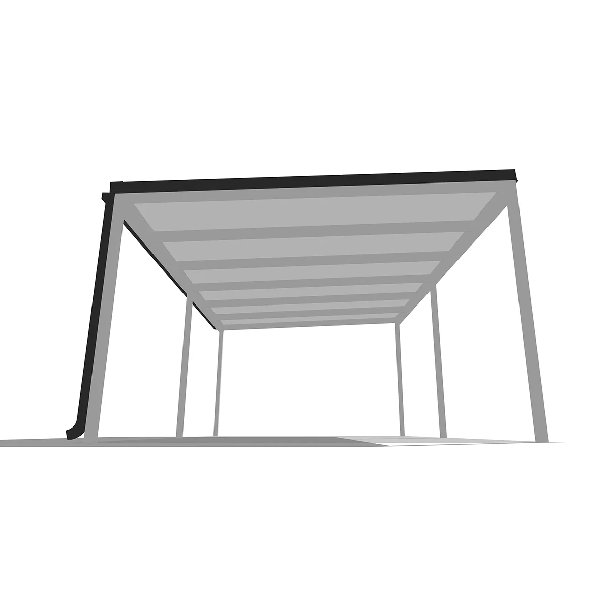 A tető 6 oszlopon nyugszik, melyek két oldalra vannak rendezve és beton alapba kerülnek rögzítésre. A szerkezet fedése szendvicspanel, ami antracit és fehér színekben érhető el. A szendvicspanel tetők előnye, hogy nem engedik át a természetes fényt, így teljes árnyékban lesz az autója.