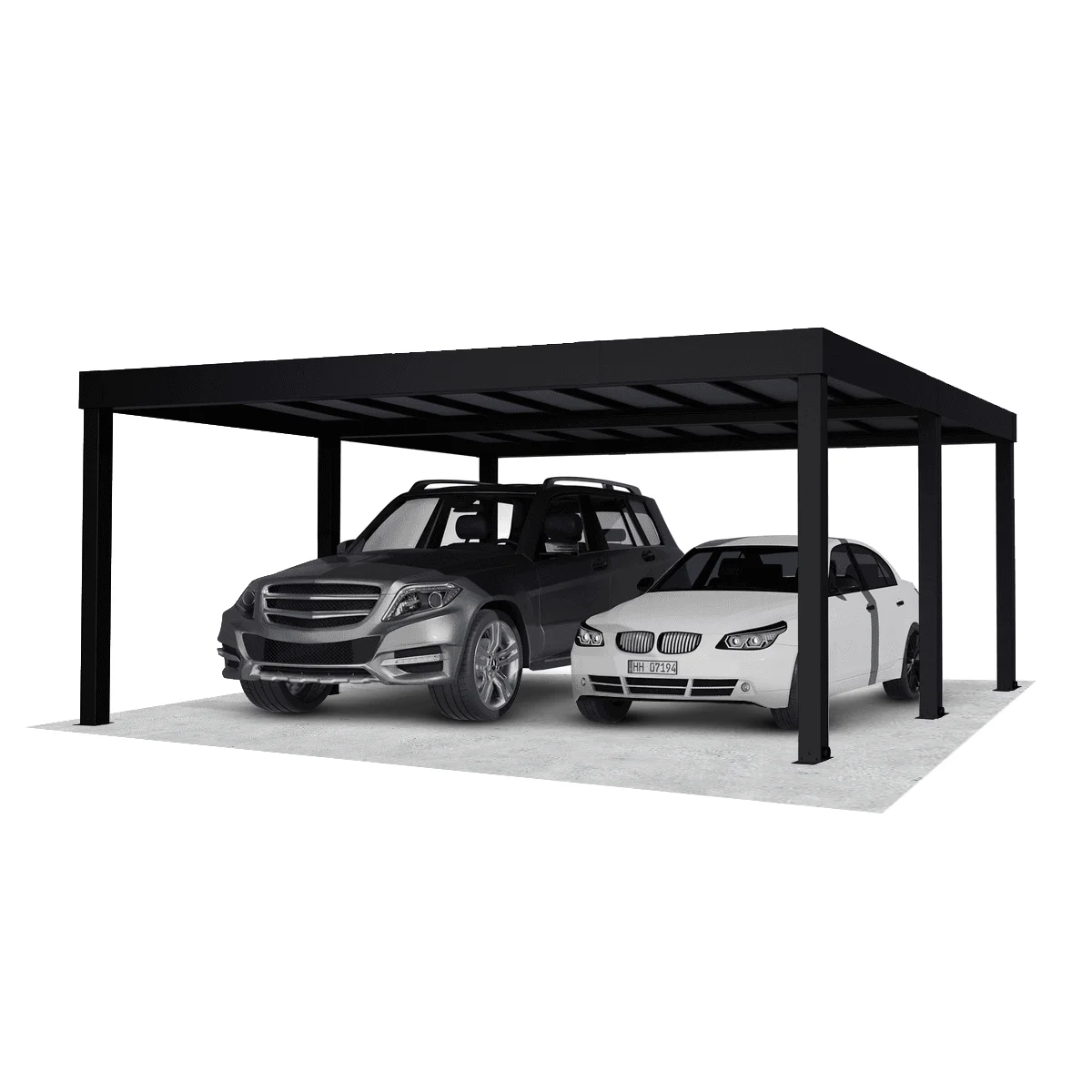 Palram OSLO 6 lábon álló autóbeálló egyenes lapostetővel, alumínium szerkezettel és többrétegű polikarbonát fedéssel.