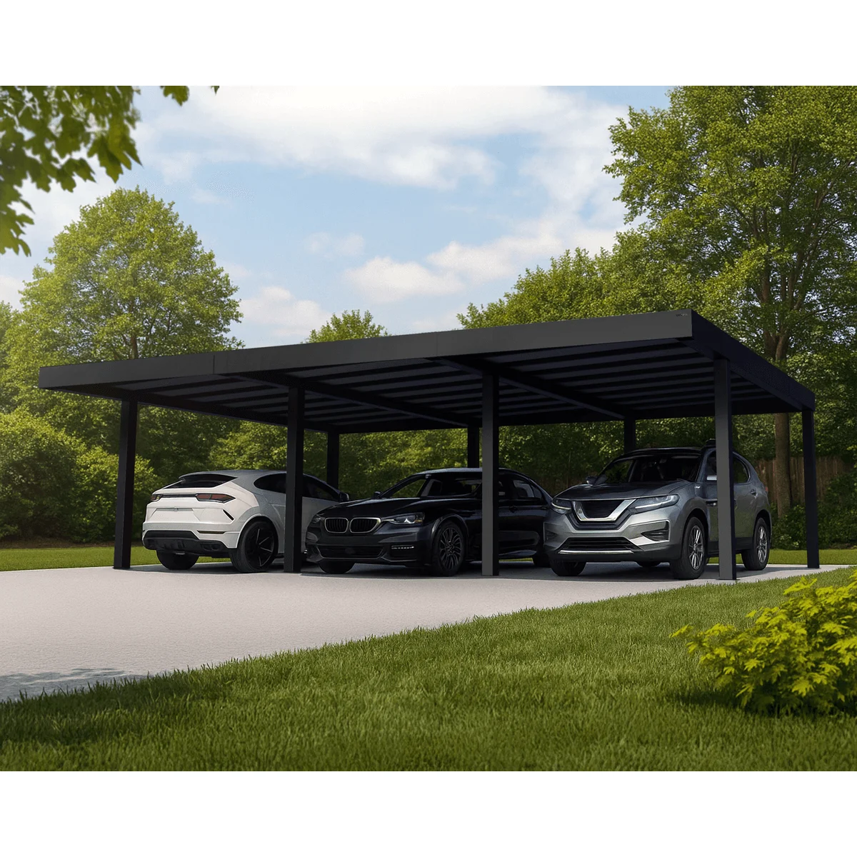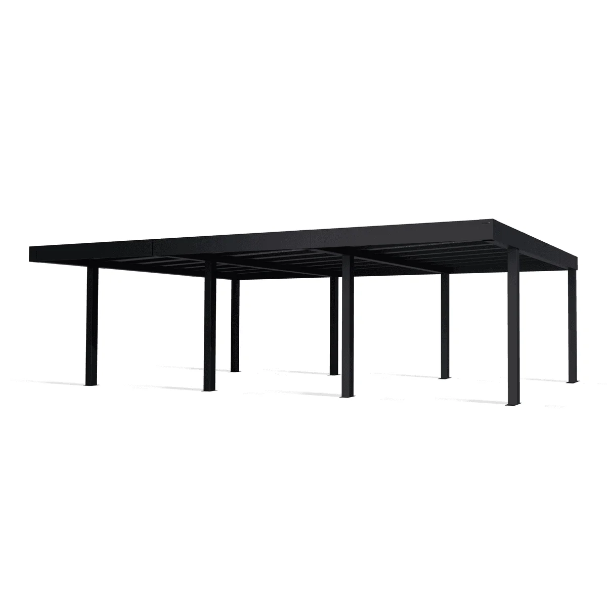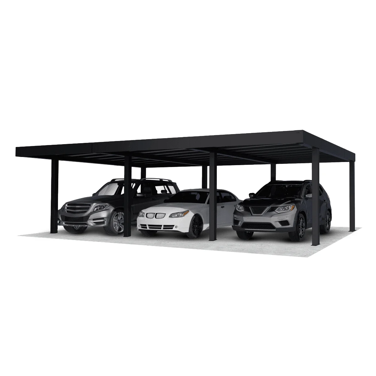 A tető 6 oszlopon nyugszik, melyek beton alapba kerülnek rögzítésre. A nagy teherbírású tető 10 mm-es, szürke, több rétegű polikarbonát panelekből áll, melyek 100%-os UV-védelmet adnak. Megakadályozzak a káros sugarak bejutását, valamint a penész és a szennyeződés lerakódását a belső bordákban. Hőblokkoló technológiának köszönhetően, csökkenti a túlmelegedést és az elektromos járművek akkumulátorának károsodását, így optimális védelmet nyújt.