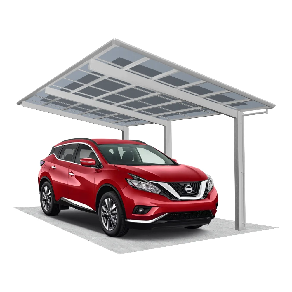 A tető 2 oszlopon nyugszik, melyek egy oldalra rendezettek és beton alapba kerülnek rögzítésre. A tető fedése opálos, vagy füst színű polikarbonát, mely 100%-osan visszaveri az UV sugarakat és 37 / 81%-ban pedig szűri az infravörös fény tartományt is. A napelem panelek erre a tetőre kerülnek ráépítésre.