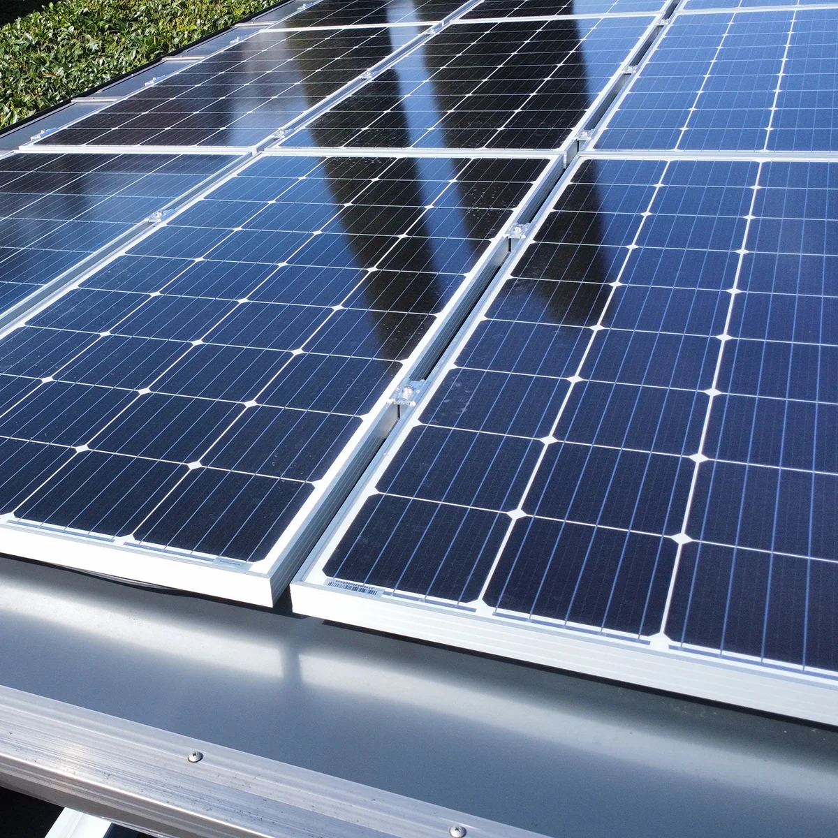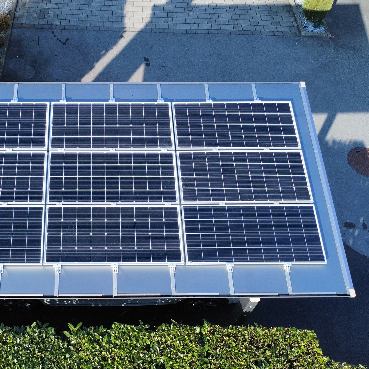 A tető 2 oszlopon nyugszik, melyek egy oldalra rendezettek és beton alapba kerülnek rögzítésre. A tető fedése opálos, vagy füst színű polikarbonát, mely 100%-osan visszaveri az UV sugarakat és 37 / 81%-ban pedig szűri az infravörös fény tartományt is. A napelem panelek erre a tetőre kerülnek ráépítésre.