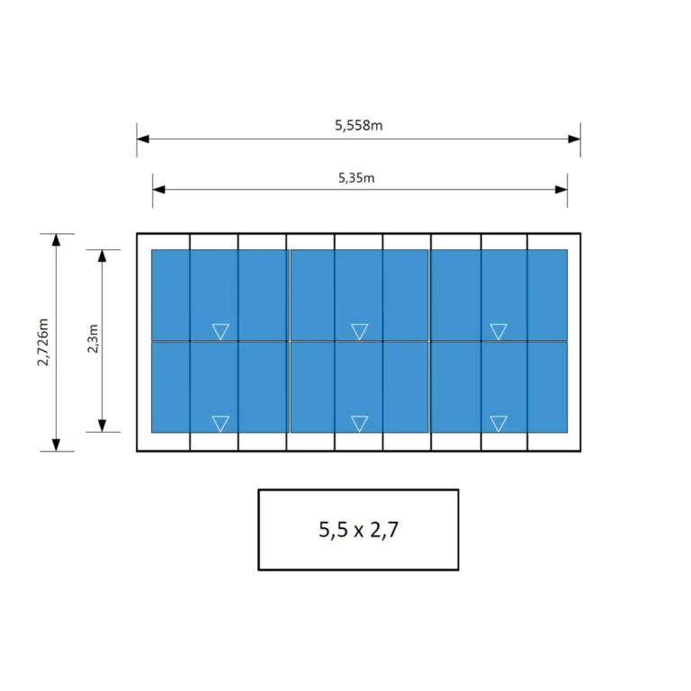 Hóteher: 100 kg/m² ezt a napelemes fedés csökkenti típustól függően: a 9 szekciós megoldás 11 kg/m²-rel, a 6 szekciós megoldás 13 kg/m² -rel.