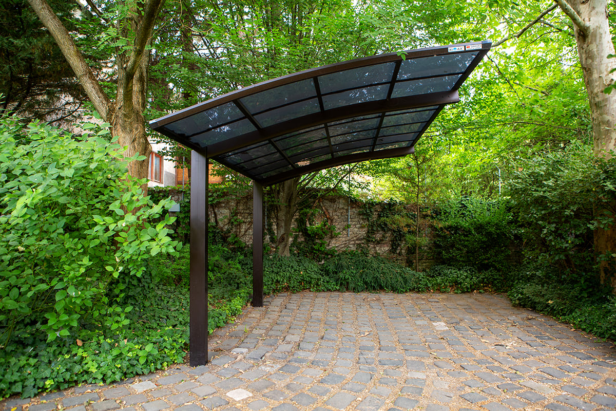 Ximax Portoforte íves autóbeálló, alumínium szerkezettel és polikarbonát fedéssel