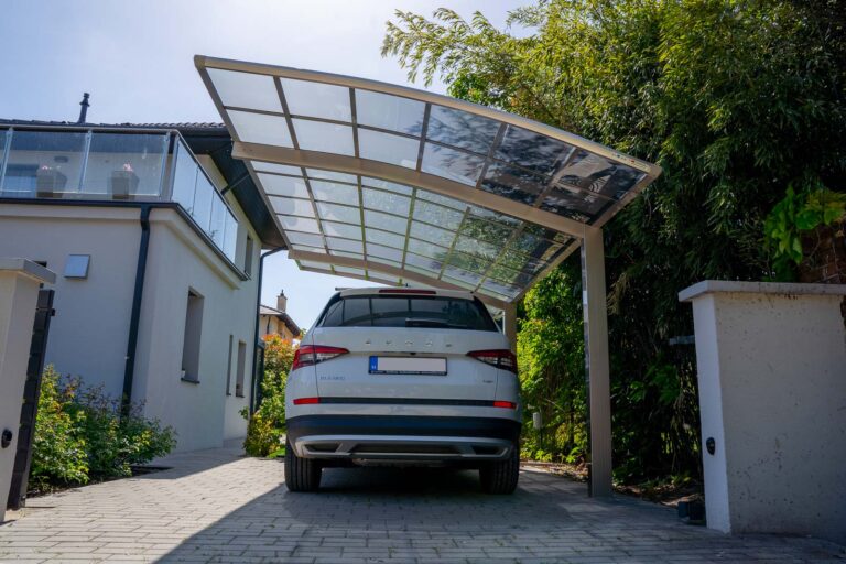 Ximax Portoforte íves autóbeálló, alumínium szerkezettel és polikarbonát fedéssel